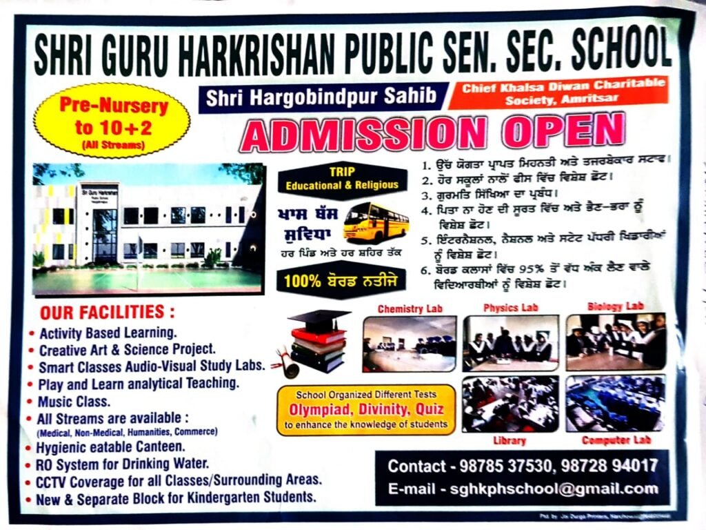 Sri Guru HarKrishan Public Senior Secondary School, Sri Hargobind Pur Sahib, is committed to providing quality education rooted in strong values, academic excellence, and holistic development. We strive to create a nurturing environment where students grow into confident, responsible, and compassionate individuals prepared to meet the challenges of the future.